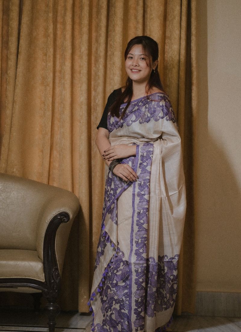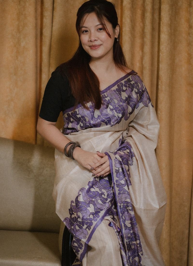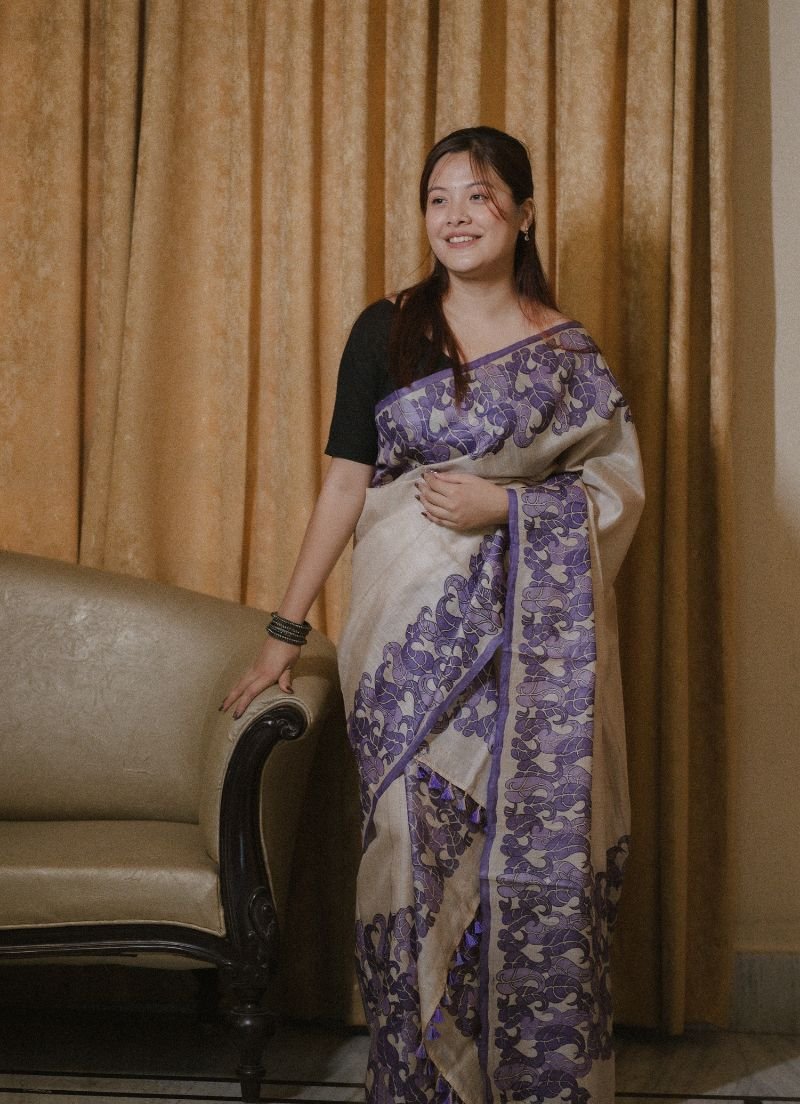 Pure Desi Tassar Silk Mekhela sador with Leaf (Hand block print)